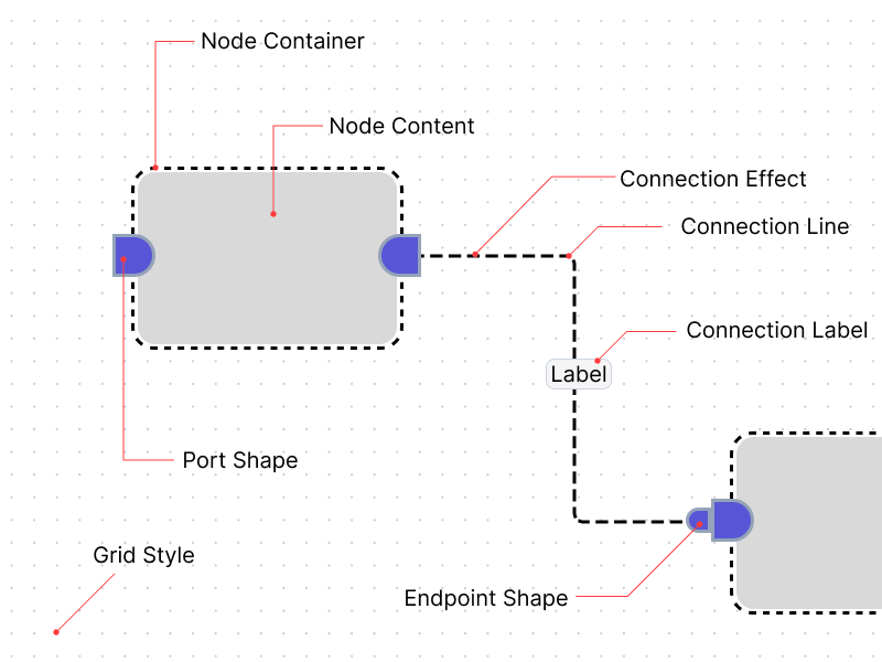 - Connection Styles: Implement custom connection renderers like bezier, smoothstep, step, and straight